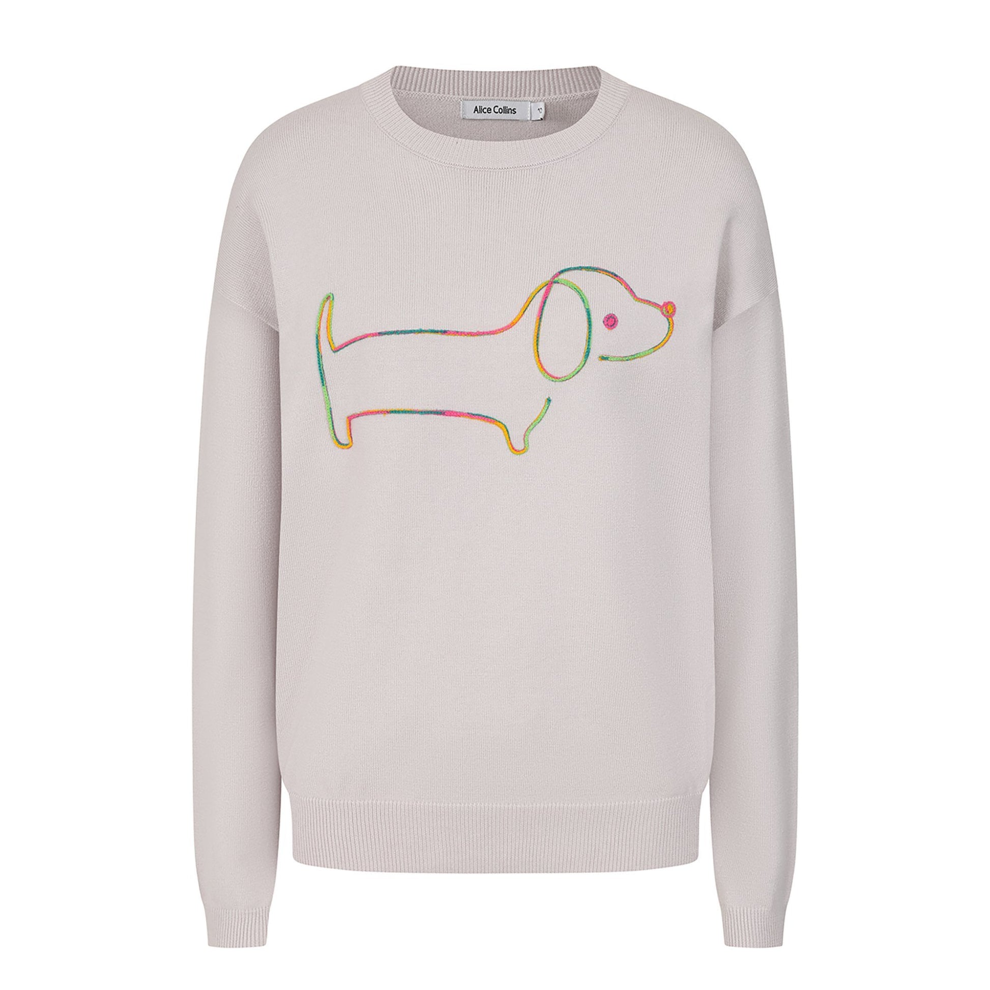 Cute, colourful, and chic, the Alice Collins Sausage Dog pullover is an essential addition to your wardrobe whether you’re a dachshund devotee or simply want to bring a little charm and comfort to your outfits, whether you’re layering it up for days out in town or just relaxing at home. Made with a lightweight, comfortable blend and with a classic ribbed round neck collar, cuffs, and hem finish, this pullover features a contrast embroidered sausage dog design that’s bright and bold. Fun, fabulous, and versatile, this pullover is perfect for anyone dotty for dachshunds!
