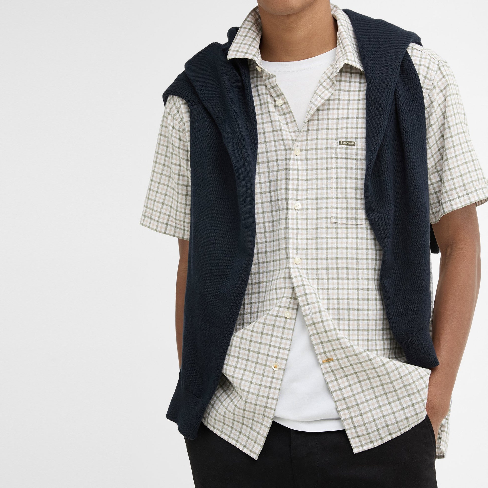 • Chest pocket with Barbour and Shield branded label