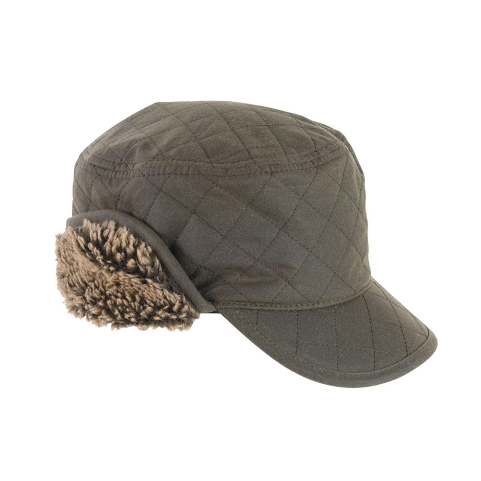 Barbour Men's Stanhope Trapper Waxed Hat is a wax cotton quilted trapper with shearling fleece for extra warmth.