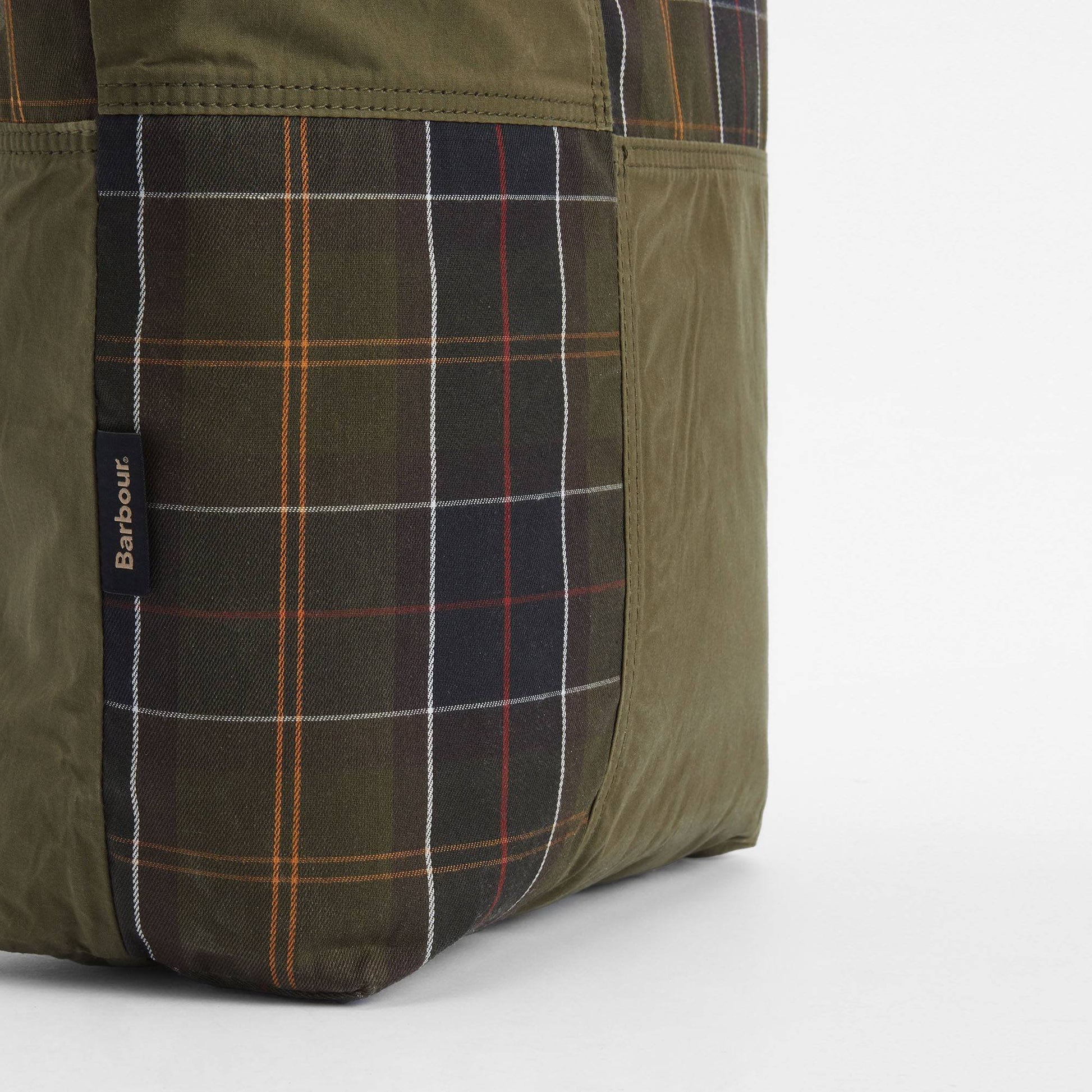 Uniquely Barbour, this patchwork style tote showcases tartan and dry wax panels, as well as featuring comfortable webbing carrying handles and a stud closure. Offering a range of internal pockets to help keep your belongings in order, this patchwork tote is perfect for everyday use.